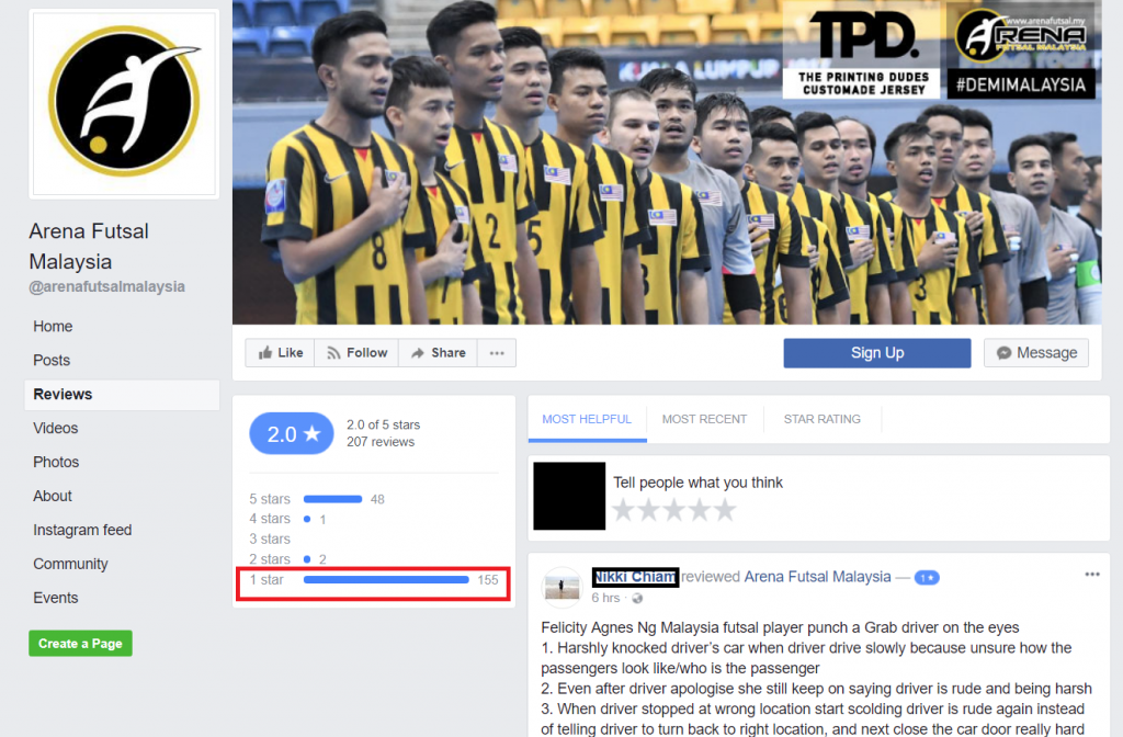▼ 因打人的事件后,网友纷纷都到此面子书给予1星的评价。