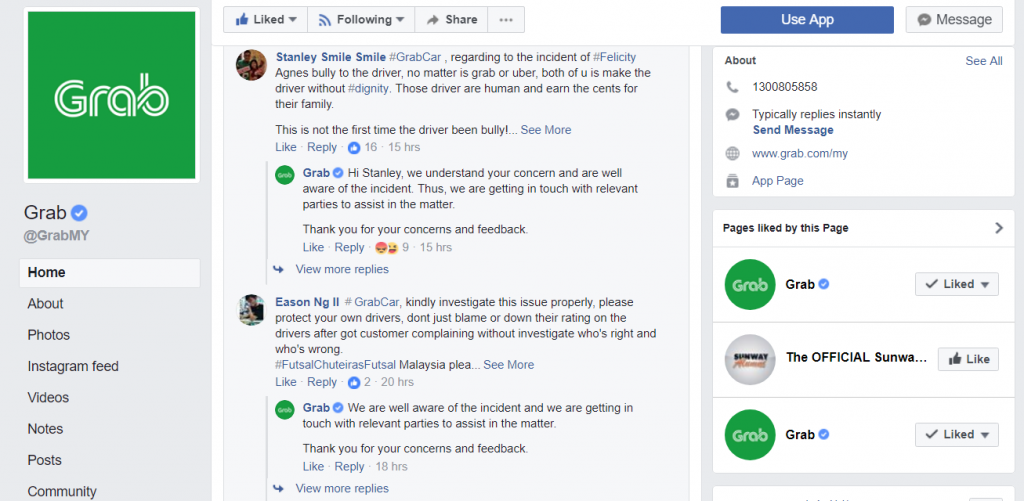 ▼所以 Grab的面子书真的被洗版了,但Grab 的客服都一一回复所有的留言。