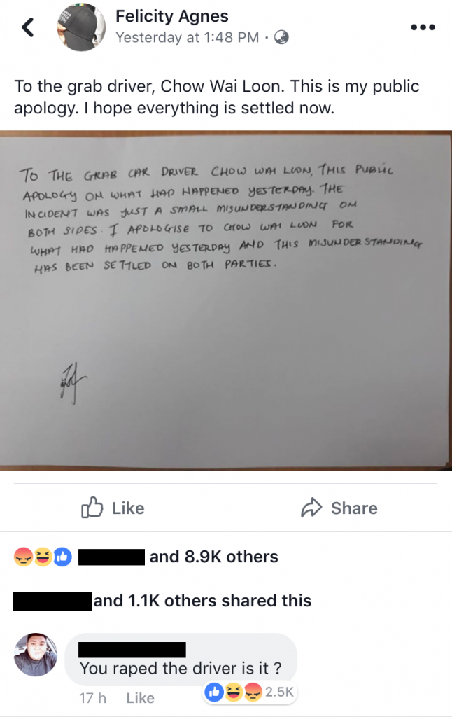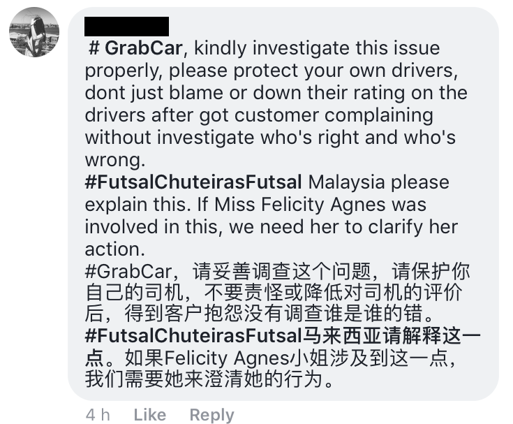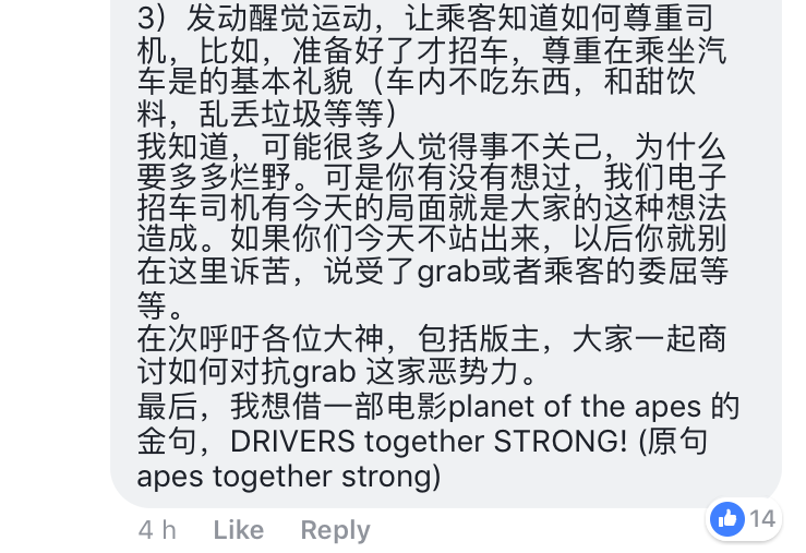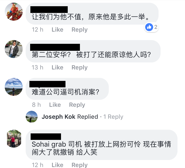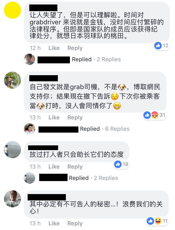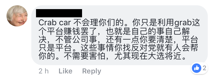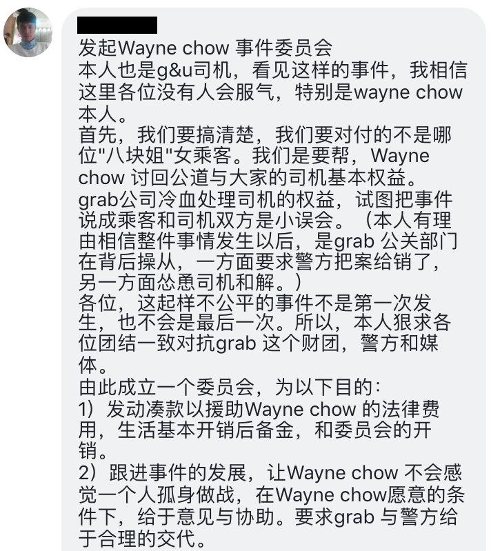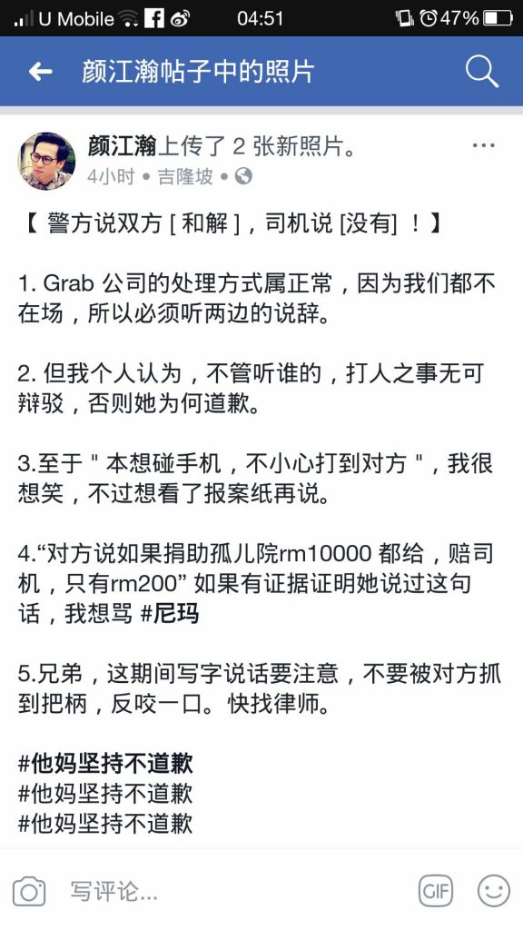 “Mr.Chow, you can claim for your medical expenses. And please clarify to everyone that Grab is not involved in this case. We have to listen to both sides as perhaps both parties are wrong. We will also call to the passenger to ask what has happened.” 他冷冷的说到。