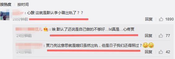 贾乃亮引用网络对他的形容和对李小璐的指责,没有一句否认和指责媒体造谣,一些网友解读贾乃亮默认李小璐出轨。
