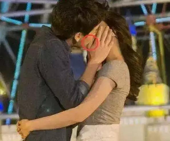李沁曾在拍戏的时候,借助手套来挡住嘴巴的接触。