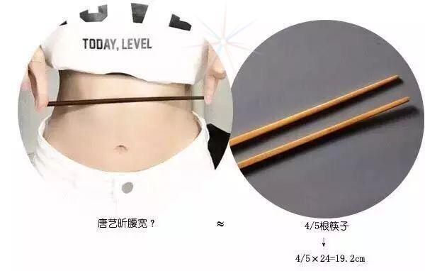 唐艺昕用筷子来量自己的腰真得是太保守啦!两边都富馀出很多,腰宽最多就筷子的五分之四。