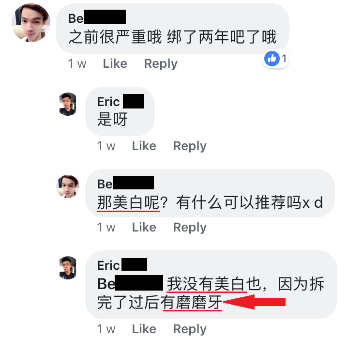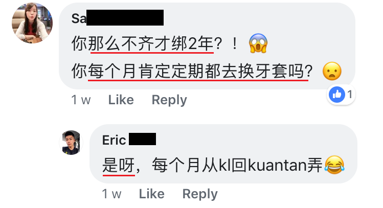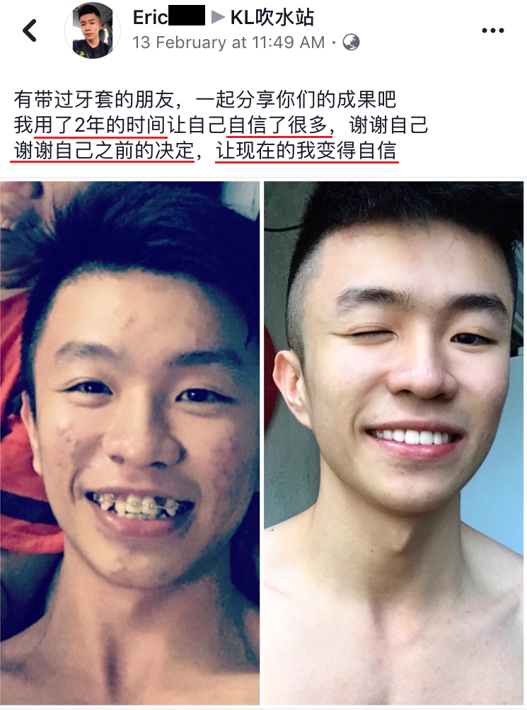 今年的情人节前, Eric在KL 吹水站贴文呼吁有带过牙套的朋友一起分享他们的成果。Eric还表示很感谢自己之前的决定让自己变得更自信,贴文也附上了Eric 绑牙前后的对比图。 所以引起了很多带过牙套还是正在带着牙套的网友回应。