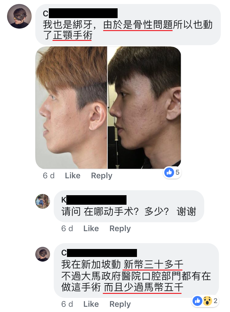 ▼网友也分享了为了绑牙动了正颚手术因为骨性的问题。(价钱:SGD30k++= RM90K)