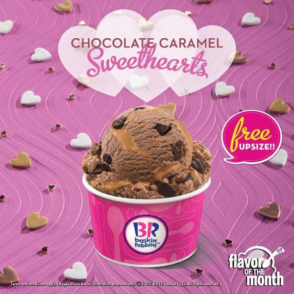 购买新口味Chocolate Caramel Sweethearts冰淇淋可免费从Single Regular升级到Double Junior。