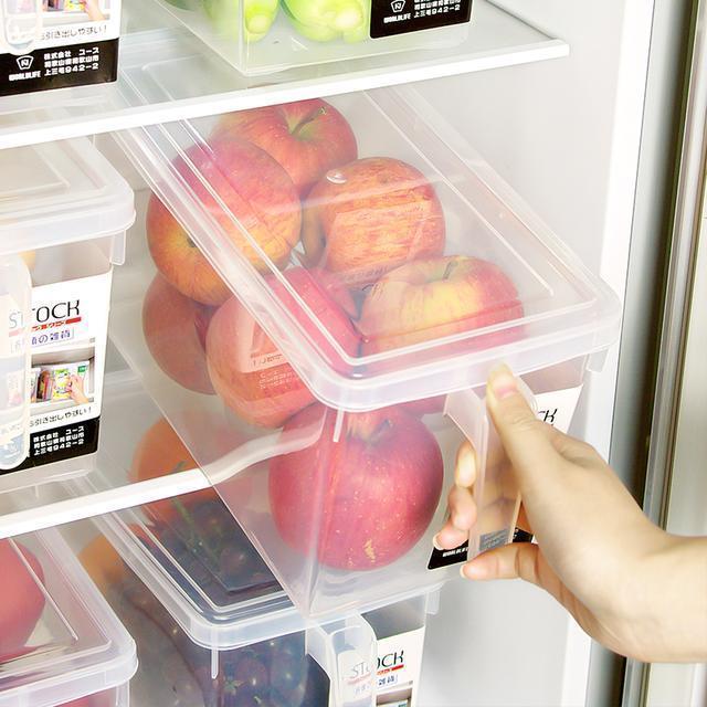 ~这款带手柄水果保鲜冰箱收纳盒採用环保材质,透明设计,方便看到盒内物品;带盖防尘防潮,手柄设计存取自如,可放在冰箱,橱柜等傢具上。