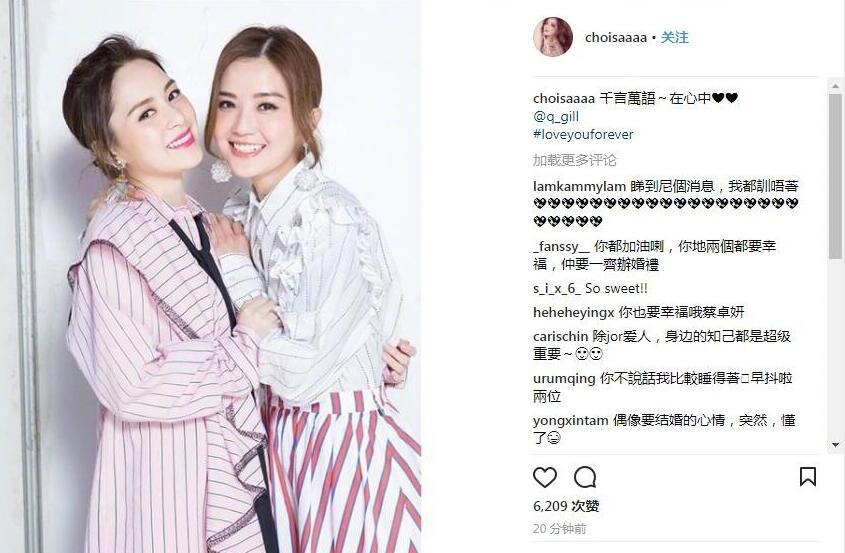 而好姐妹阿Sa(蔡卓妍)都有在IG送上祝福,果然姐妹情深!粉丝们都送上无限的祝福。