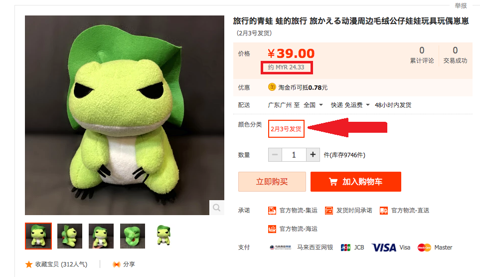 这款旅行青蛙大概RM24, 价钱还没包括运回来马来西亚的运费。