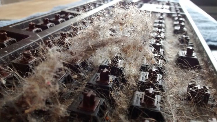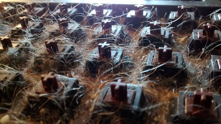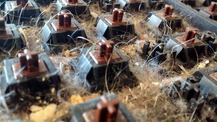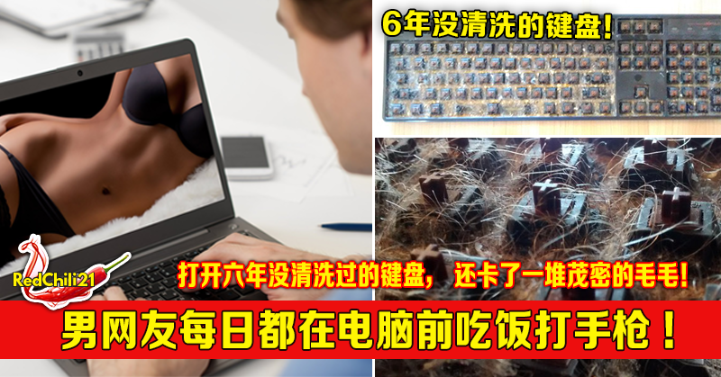 男网友每日都在电脑前吃饭打手枪 !打开六年没清洗过的键盘, 还卡了一堆茂密的毛毛!