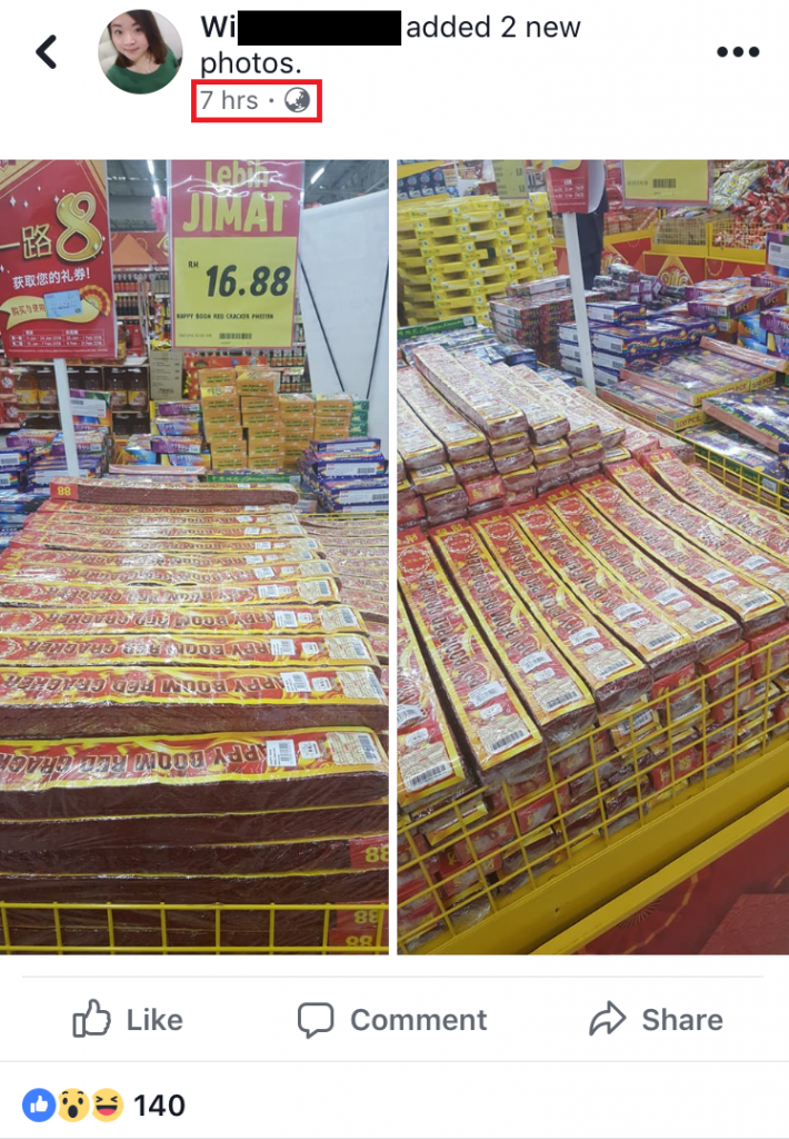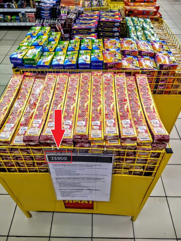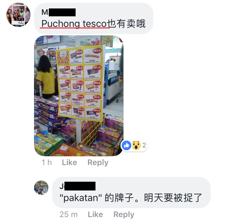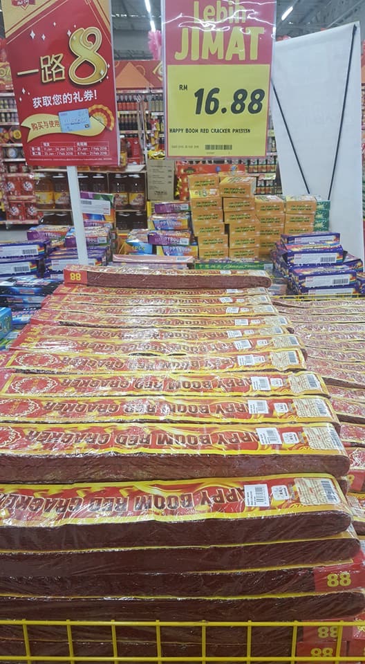 今天中午有一位女网友上载了这两张图,图片里看似鞭炮在一个不知名的shopping mall 以RM16.88光明正大的售卖。此图马上得到了广大的网友的分享,至今已有1560 shares,这实在让华人子弟太难以相信因为众所皆知售卖鞭炮是犯法的而且还能公开在广场里售卖。