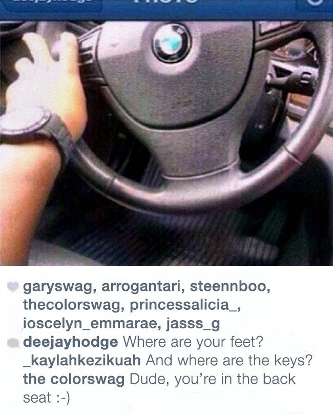 4.「我买了一台BMW。」「你的脚呢?」「钥匙呢?」「你是在后座吧:)」