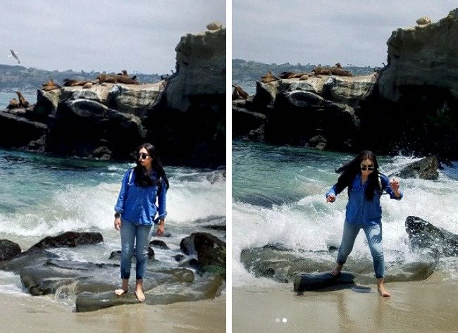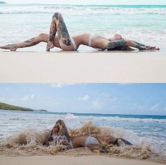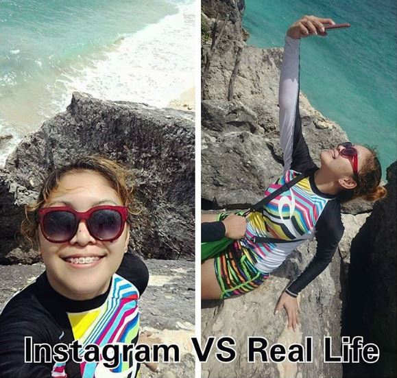 1.「我最爱边做瑜伽边冲浪了。」(左:IG,右:现实)