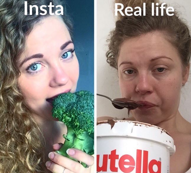 7.「我的美丽秘密就是修图健康饮食。」(左:IG,右:现实)