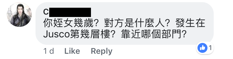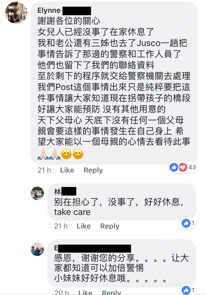 ▼Elynne的朋友也表示不敢想象居然会发生在她经常去的Jusco。