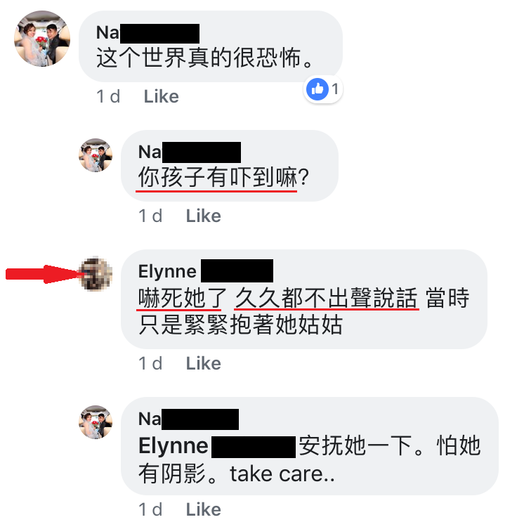 ▼网友们读了Elynne的分享纷纷觉得好恐怖和她的朋友的留言关心她孩子的情况。