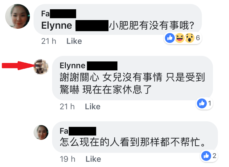 ▼不久后,小女孩的妈妈Elynne也在其脸书贴文说出故事的来龙去脉。