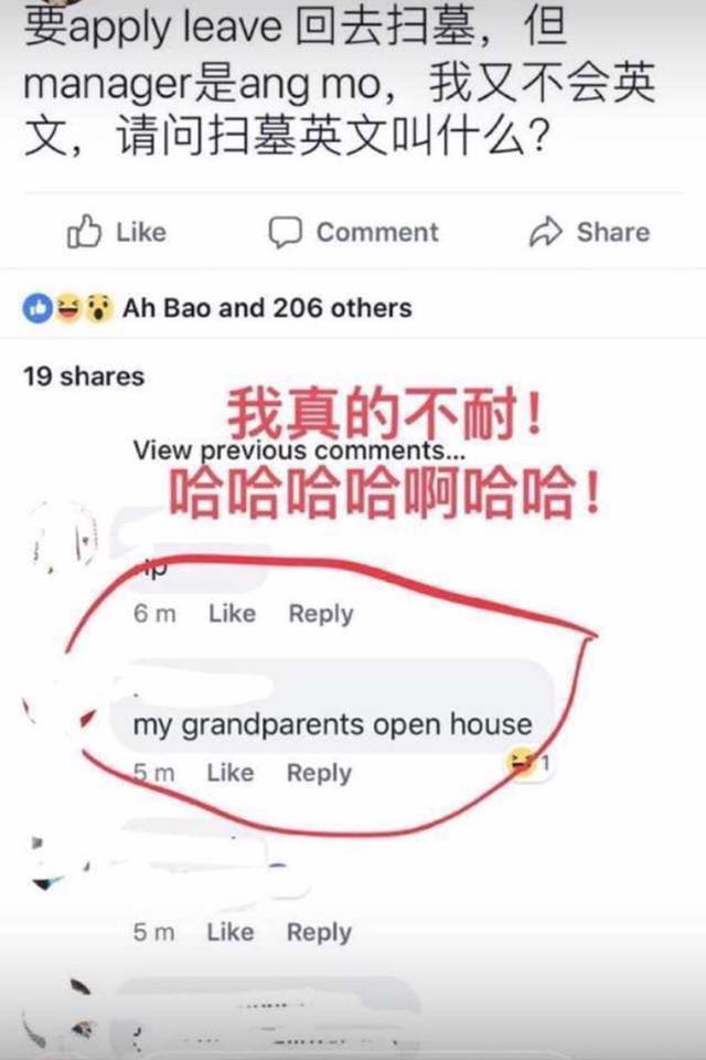 ▼所以近日网上流转了网友询问怎样跟他的洋人老板请假去扫墓,有位网友的神回复肯定会让你笑到喷饭!