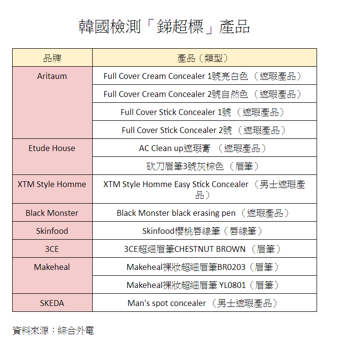 南韩食品医药品安全处验出13款韩国制造化妆品所含的重金属锑超标,韩媒指会致癌!