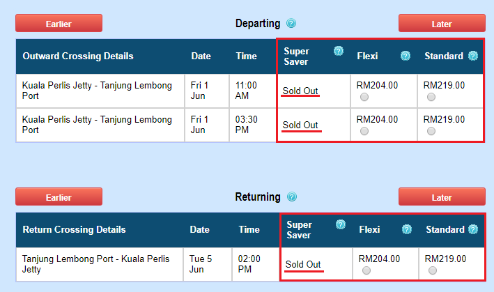 只要填上来回日期就可以Book船票了,还能online payment, 多方便呢~