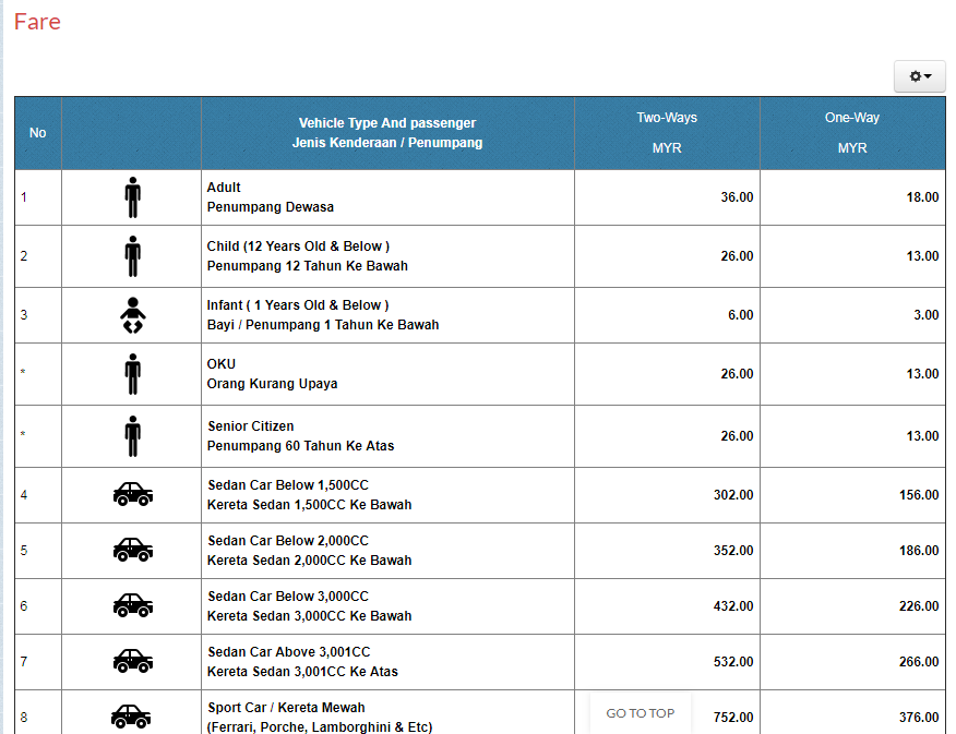 1.6 cc 汽车来回船票 =RM 300.00 (票是网上订购)