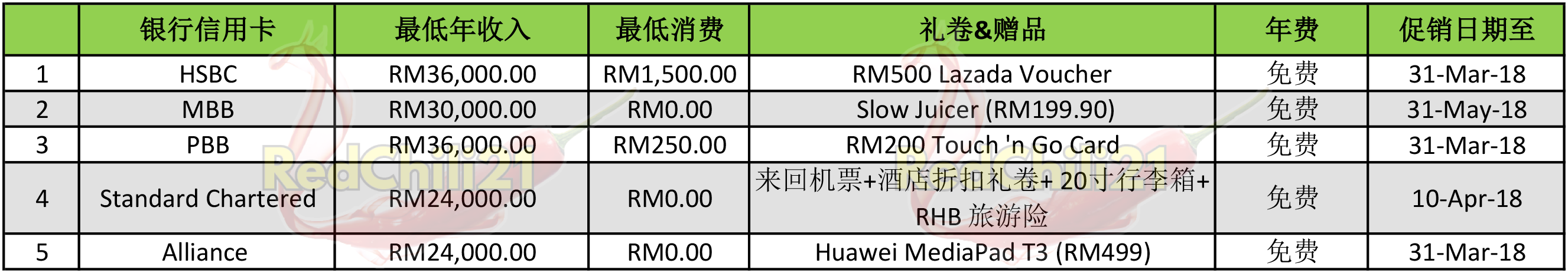 1. HSBC信用卡免费RM500 Lazada购物礼卷