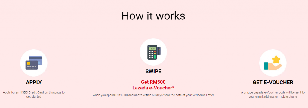 – 登入https://sp.hsbc.com.my/lazada500 (一定要通过网站申请才有效)