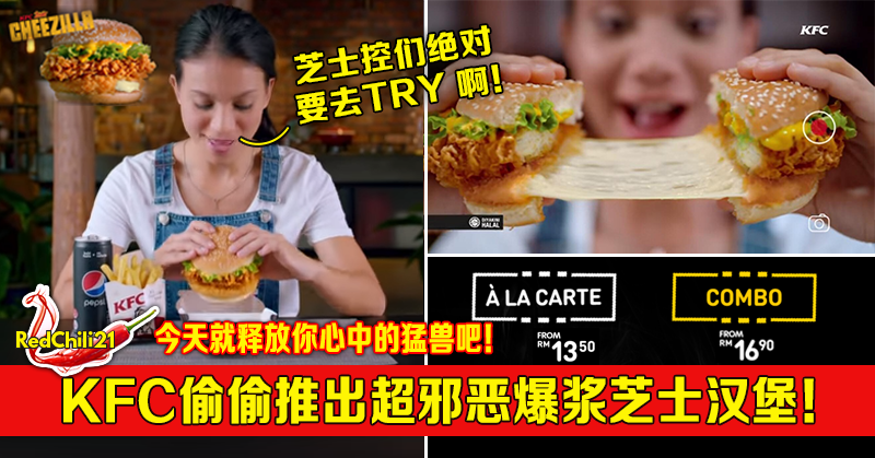 KFC竟然偷偷推出了爆浆芝士汉堡Zinger CHEEZILLA。香脆超多汁的炸鸡扒还搭配着超厚的Mozarella Cheese Patty让你吃了一口又一口!