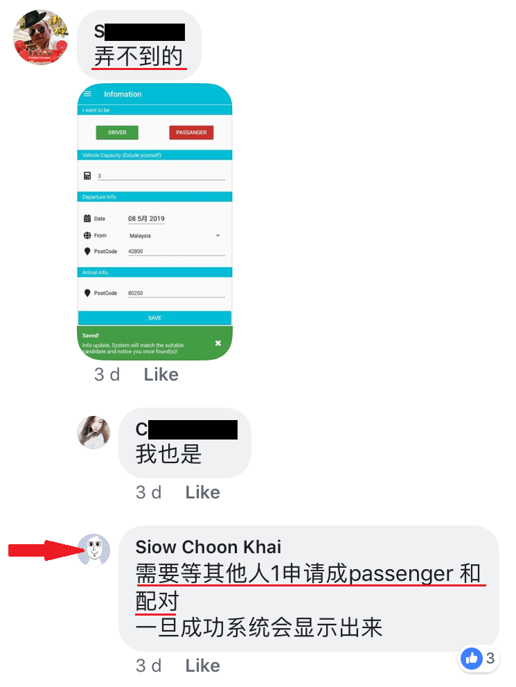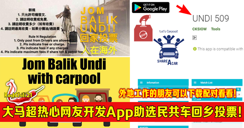 因此大马超热心网友为了方便选民可以更有系统化的回乡投票,所以免费开发了“共车回乡”的手机应用程序。