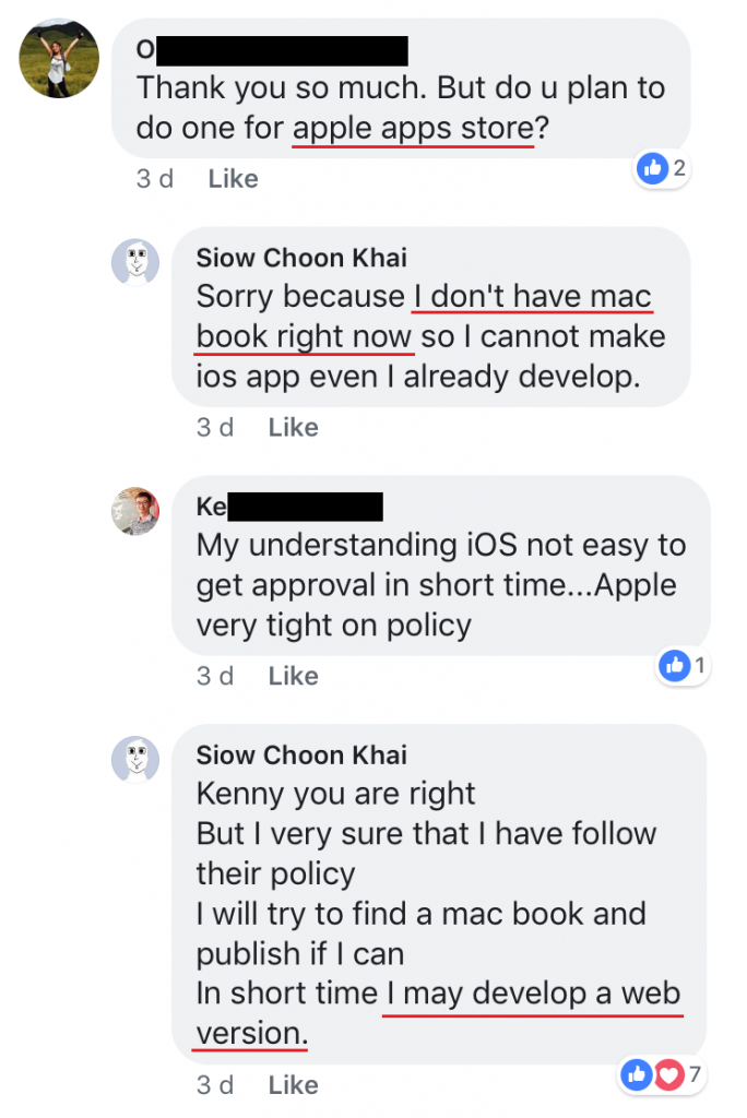 ▼也有网友留言表示下载了App但弄不到所以Siow Choon Khai也跟网友们解释如何使用。