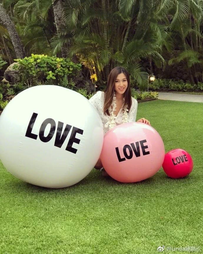 甜美可爱的钟嘉欣摇身躲在白色、粉色与红色球后面,微微带笑的脸颊甜美感爆棚,蹲姿的动作显得俏皮可爱,举手投足满满的温柔感,超有气质。球上的英文字母”LOVE”很好的表达了她对大家想说的一切,你们收到了女神的问好了吗?