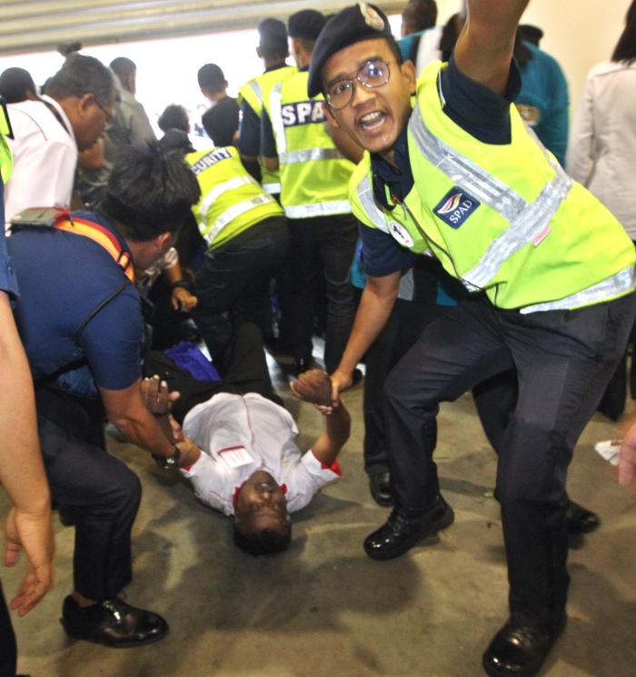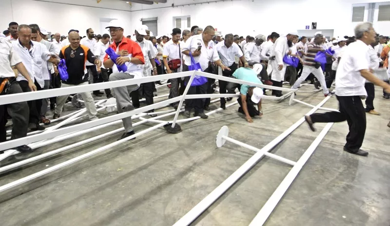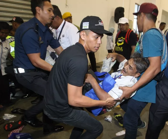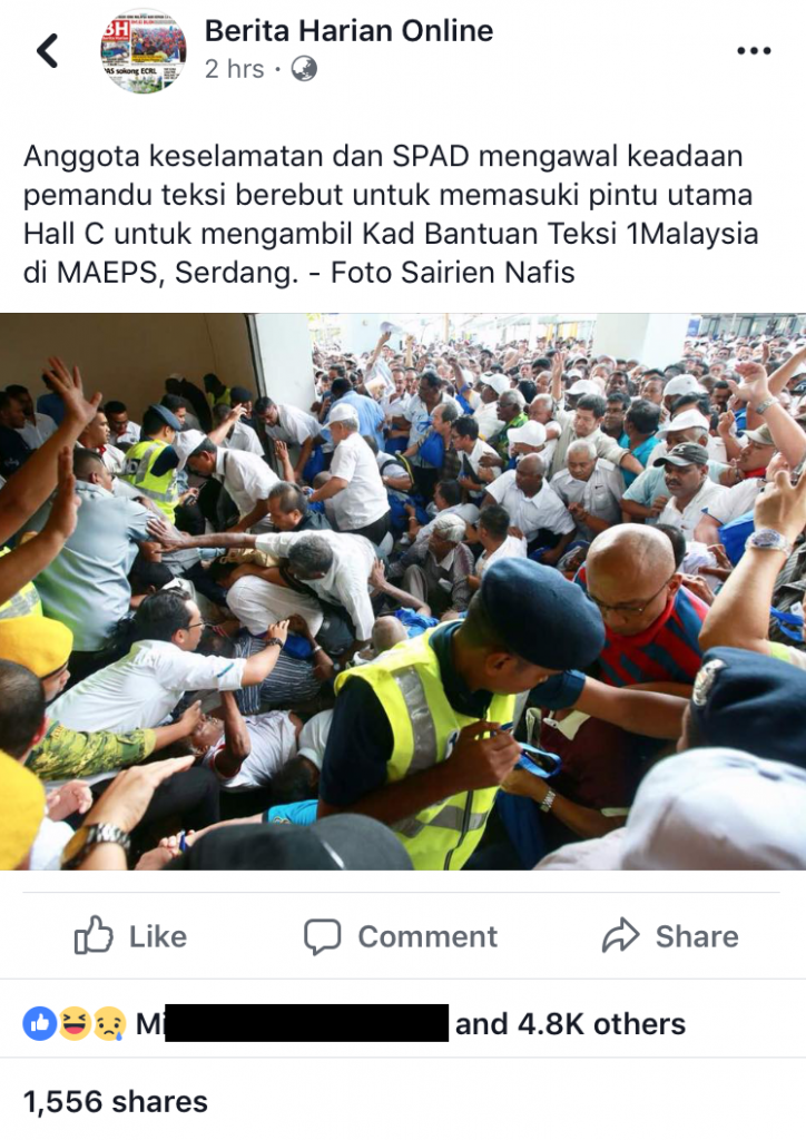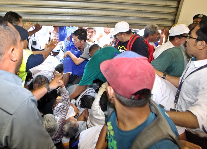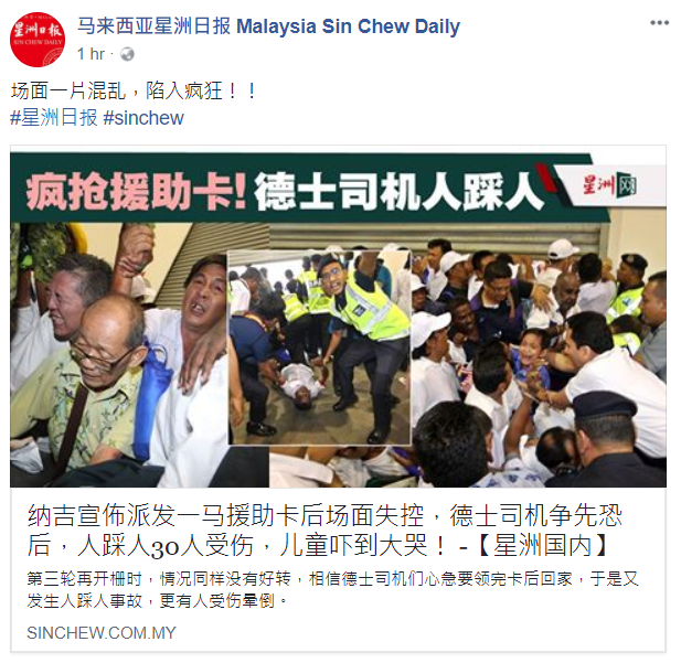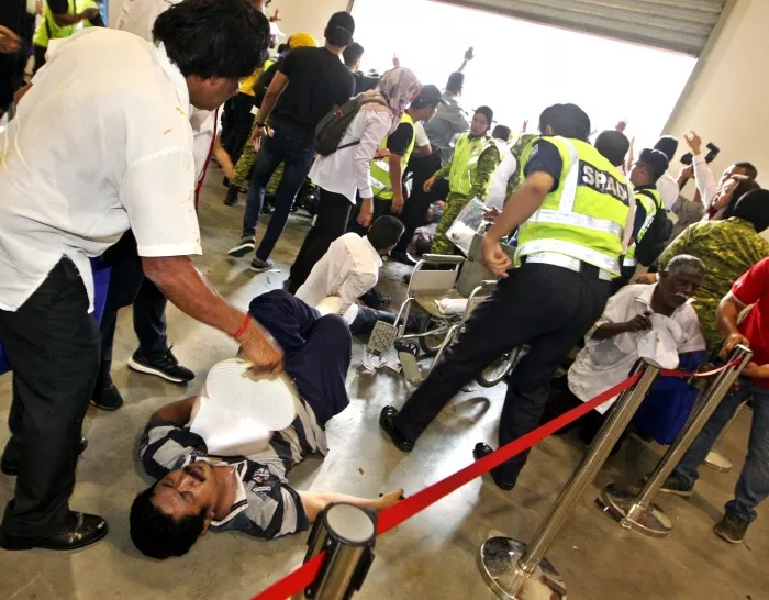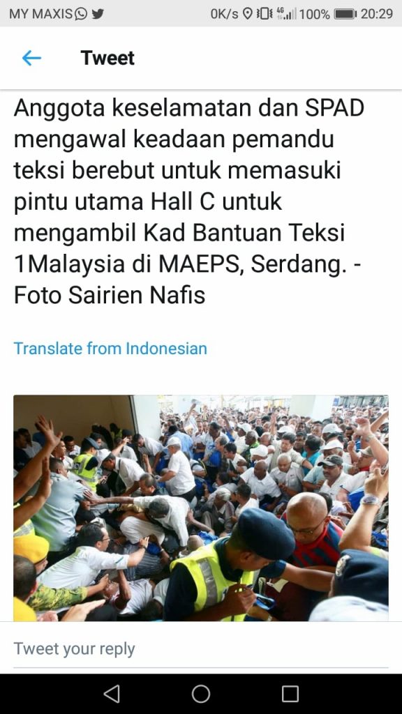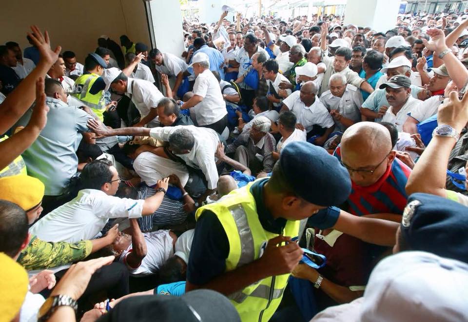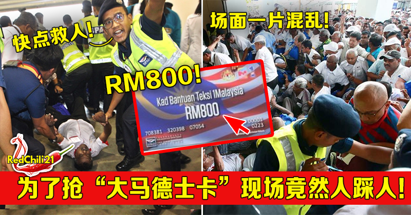 in 新闻, 首页 为了抢“大马德士卡”现场竟然人踩人! by RedChili April 13, 2018, 11:23 pm ~ ~ 今天国阵主席拿督斯里纳吉宣布,全国6万7千名的士司机,将获得一马的士援助卡,卡内附送800令吉和保险。 所以这项宣布得到了所有在场的的士司机的欢呼! ~ 但没想到派发一马德士援助卡的现场失控,德士司机们争先恐后,导致发生人踩人的现象,场面一片混乱,30人在事件中受伤,其中一人肋骨骨折,送院治疗! ~ ~ 现场一片混乱! ~ ~ ~ ~ ~ ~ ~ ~ ~ 部分照片来源: 星洲日报 Next post