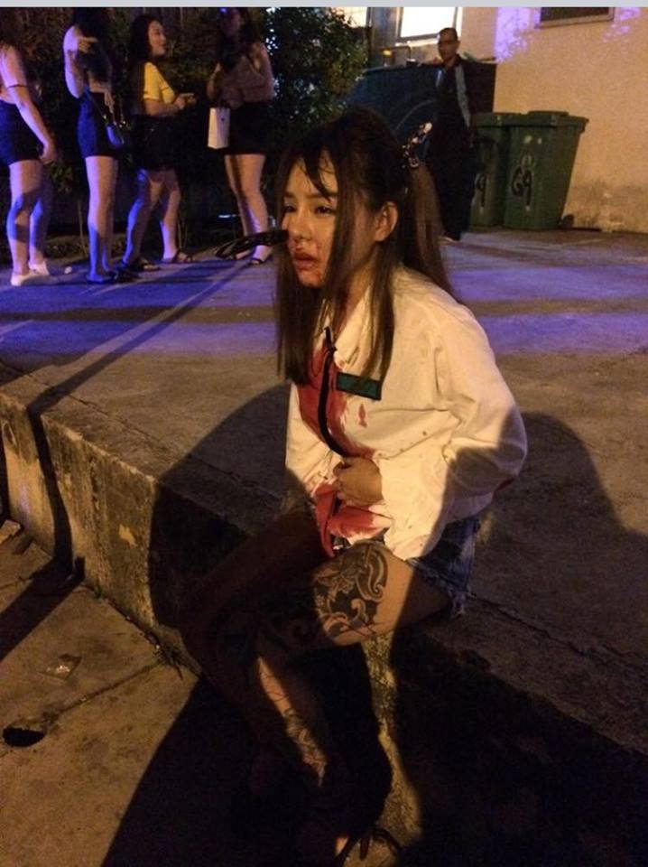 (大山脚8日讯)一名女子今晚在武吉丁雅Icon City后的停车场取车时,遭人抢劫后行凶,脸部被插上刀子,鲜血直流,非常骇人!
