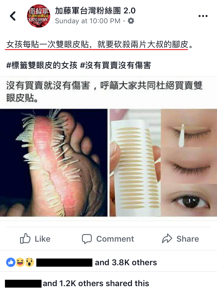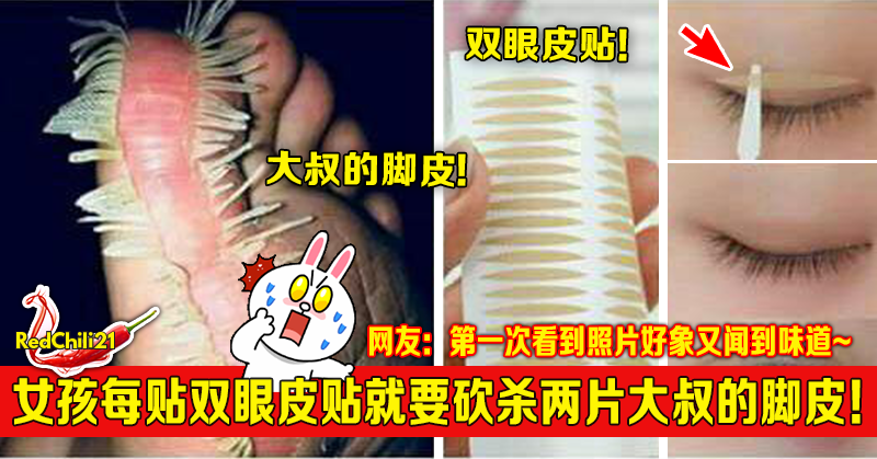 ▼原来妹子贴的双眼皮贴是大叔脚上的唷!