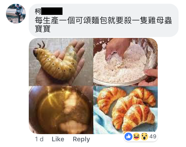 ▼每生产一个可颂面包就要杀一隻鸡母虫宝宝!