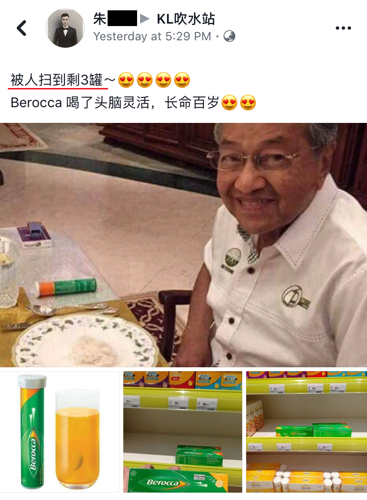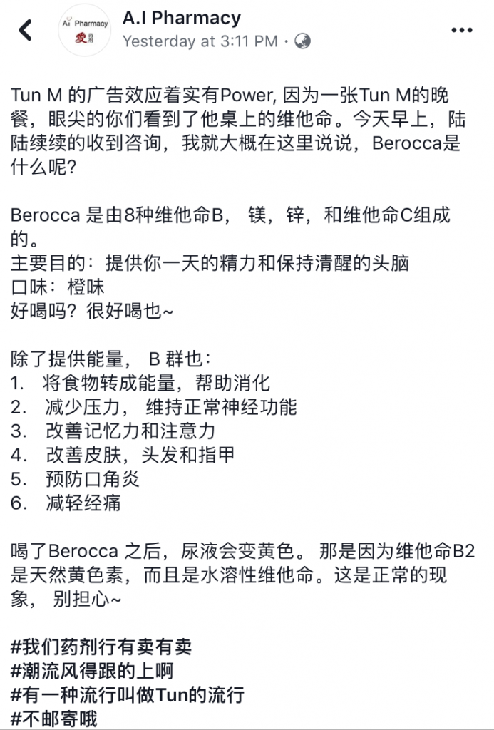 网友的重大发现就是首相桌上的维他命,所以有网友猜测是Berocca牌子的维他命所以顿时让此维他命瞬间火红了起来。