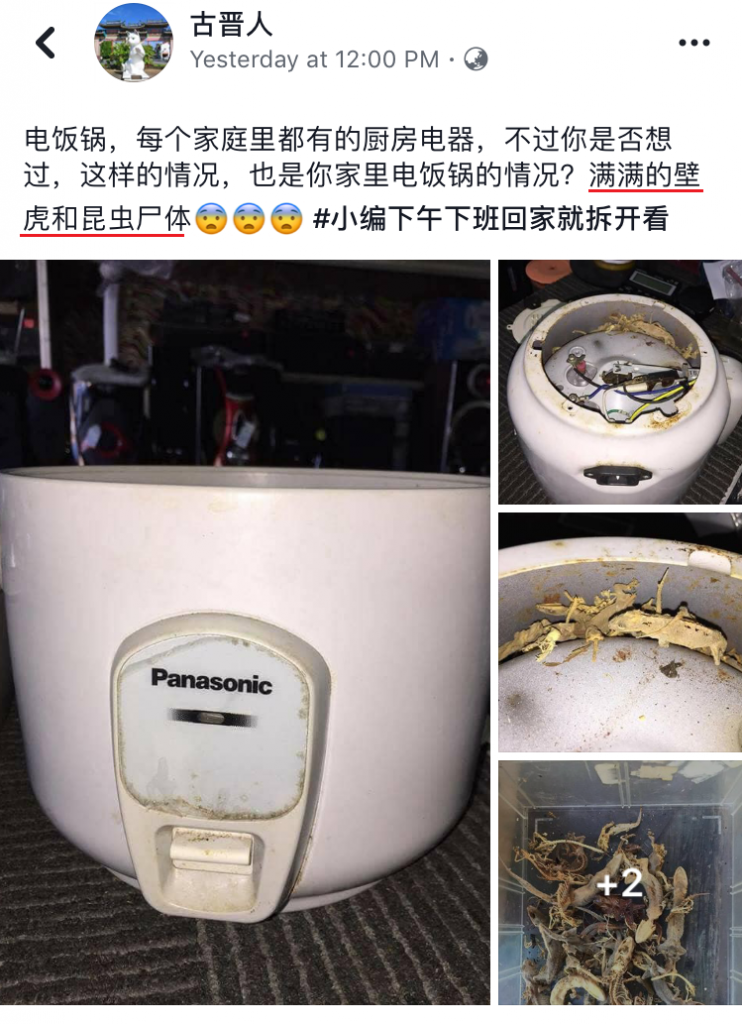 昨日古晋人上载了一组壁虎惨死在电饭锅里的照片,网友纷纷留言表示太恶心了!
