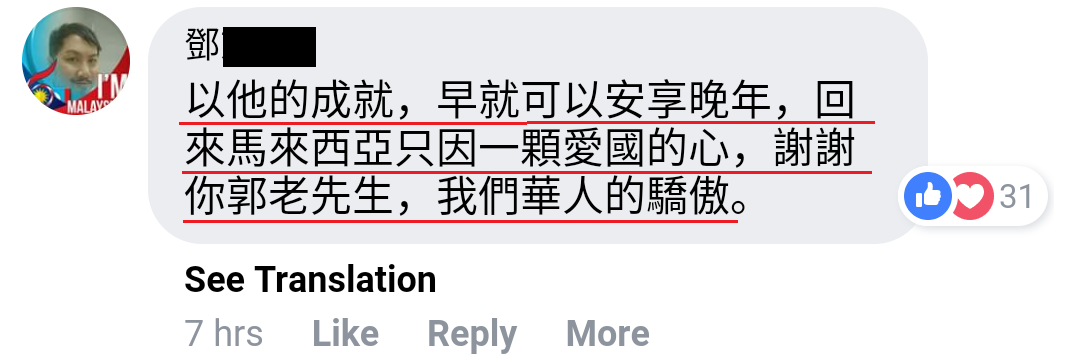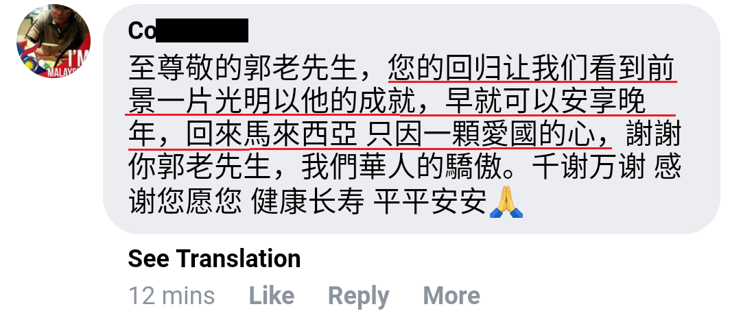 ▼对于郭老回国,不少人身感激动,幸好郭老没放弃马来西亚!
