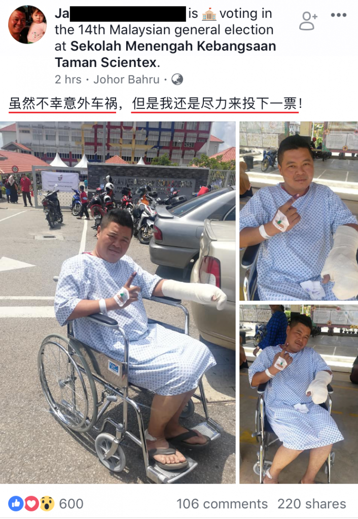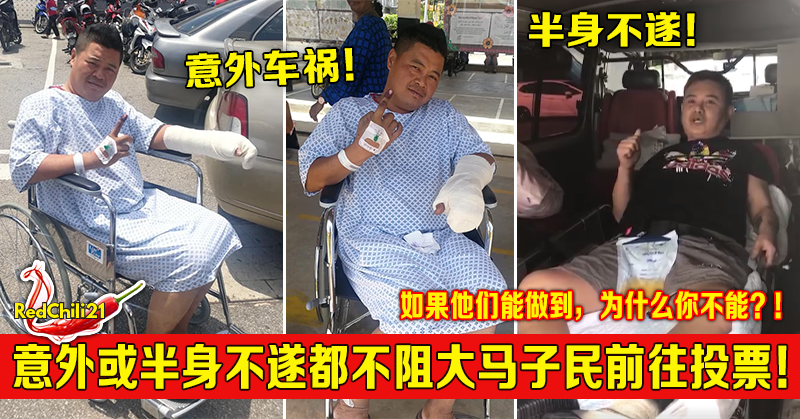 in 分享, 新闻, 生活, 首页 意外或半身不遂都不阻大马子民前往投票!如果他们能做到,为什么你不能?! by RedChili May 9, 2018, 3:56 pm ~ ~ ▼网友们看了楼主那么尽力都留言祝福他早日康复。 ▼真的是好过有些人整天投诉埋怨。。。。可是自己连注册选民也没有去完成。 ▼楼主也拜托亲戚朋友们不要给他妈妈知道免得她老人家担心。 另一边厢,一名来自大山脚的半身不遂的网友也前往去投票了。 ▼网友看了都好感动而留言祝福他早日康复! ▼知名大明星也抽空回来投票,你还有什么借口不投票呢? Next post