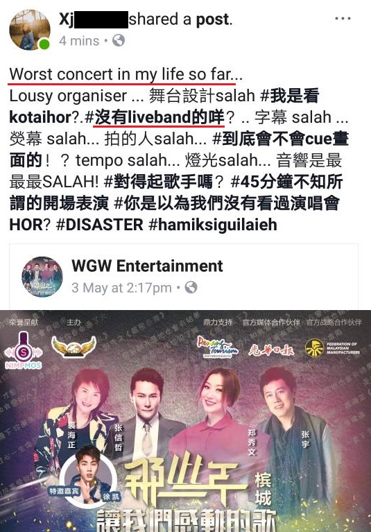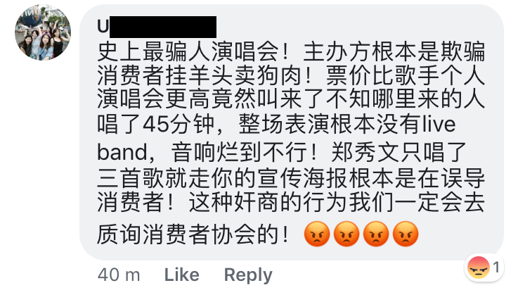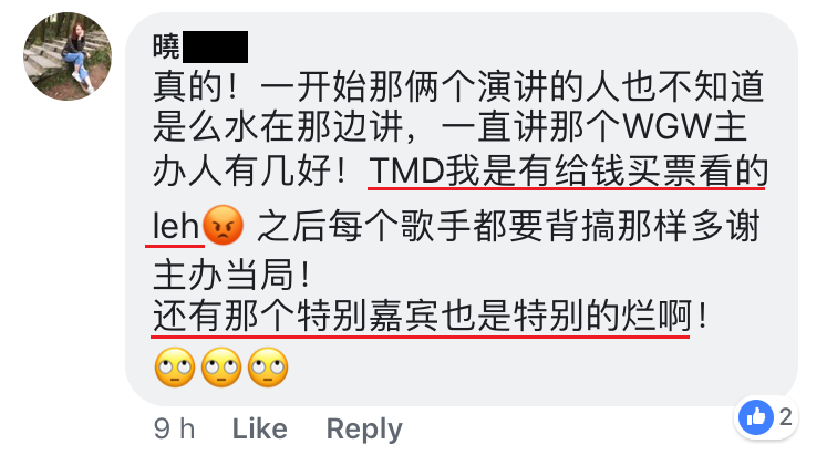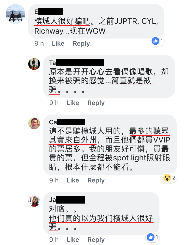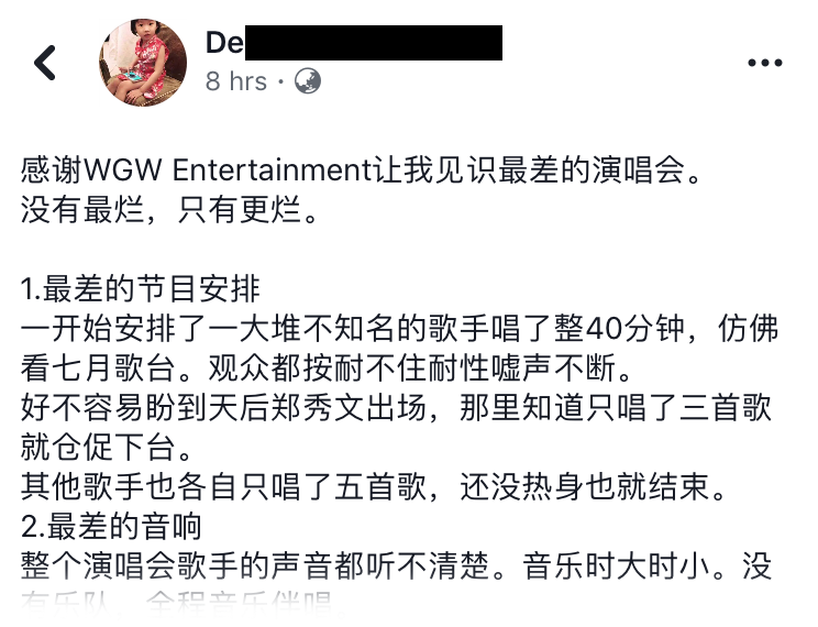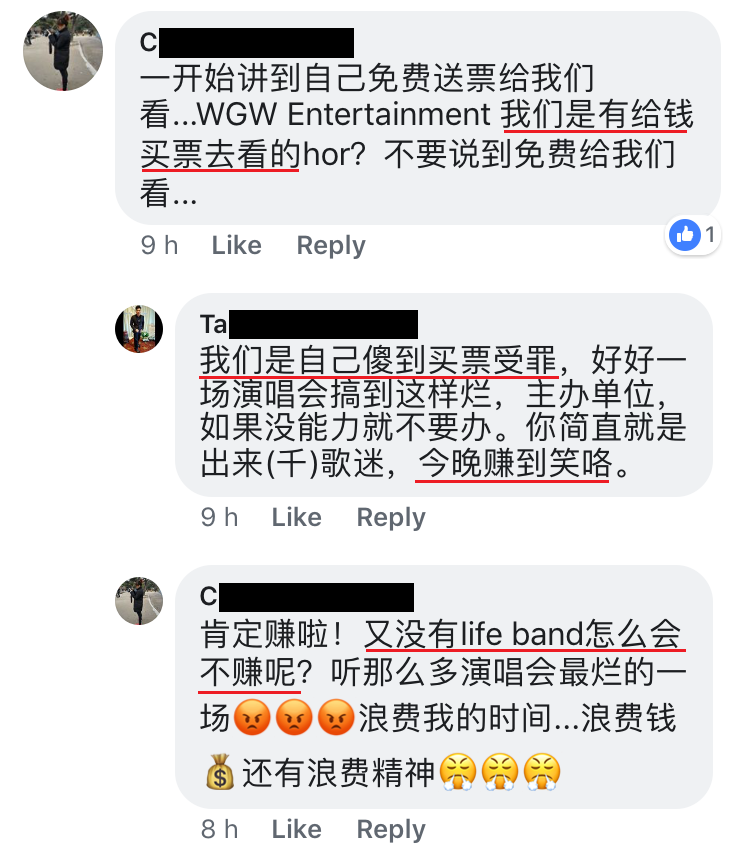 所有的观众纷纷表示以后不会再支持wgw entertainment所主办的演唱会了。