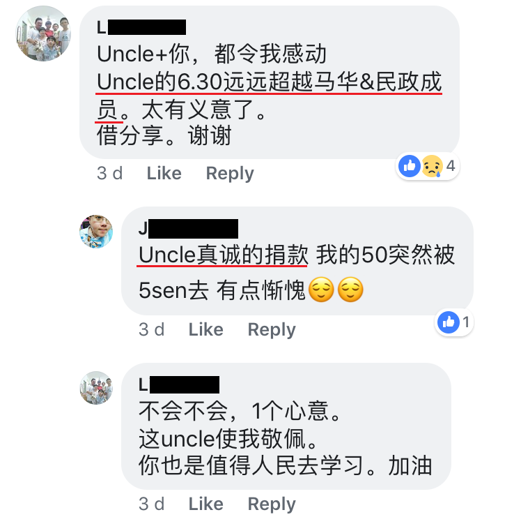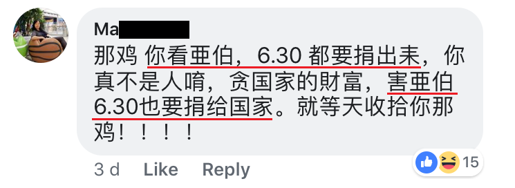 ▼网友也不忘责备前首相,如果不是因为他,Uncle也不用把身上谨有的RM6.30都要捐出来。