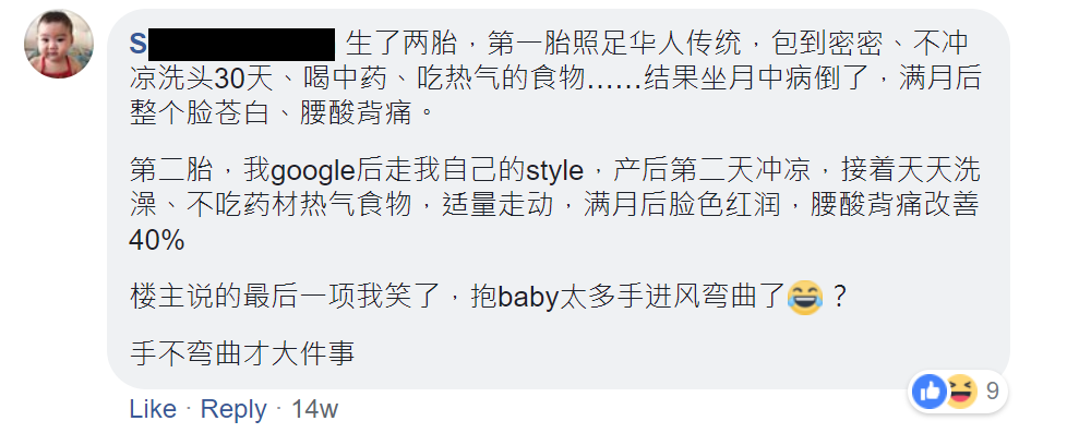 ▼也有生过2个小孩的网友表示第二胎的时候她就没跟着传统了。