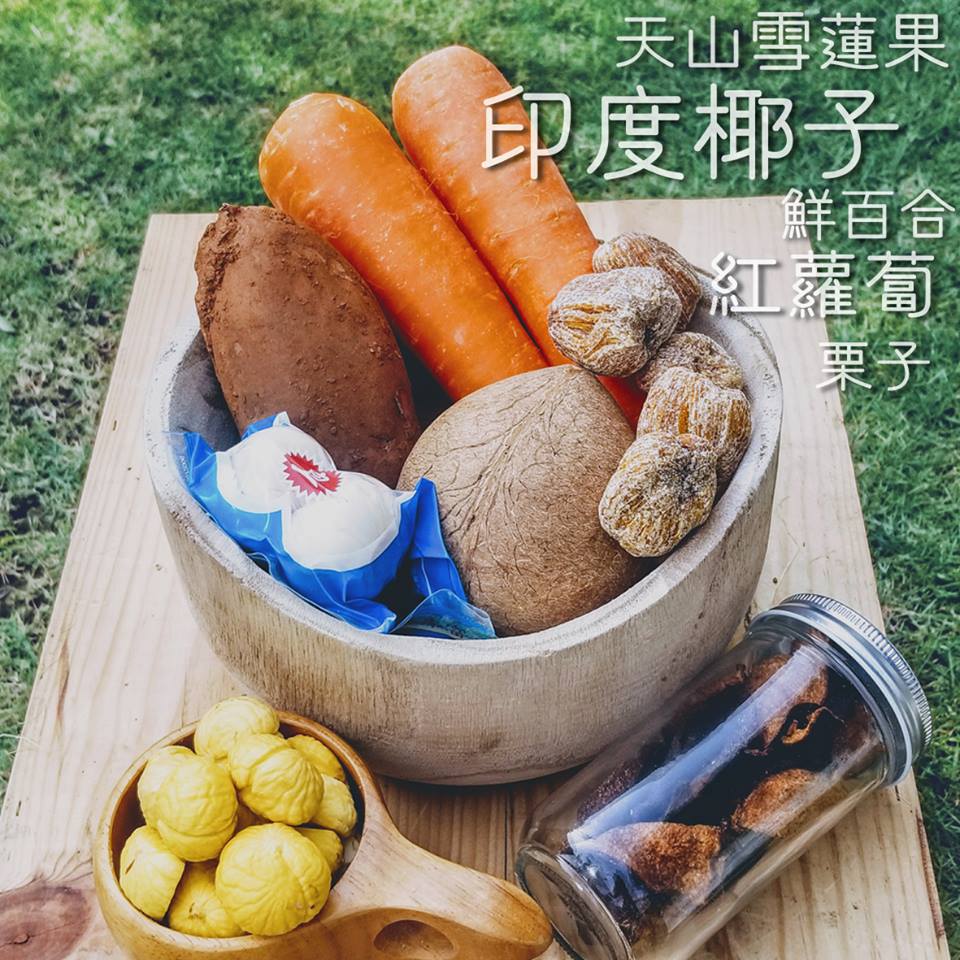 印度椰子、合掌瓜、红萝卜、甜粟米、栗子、无花果、南杏配果皮