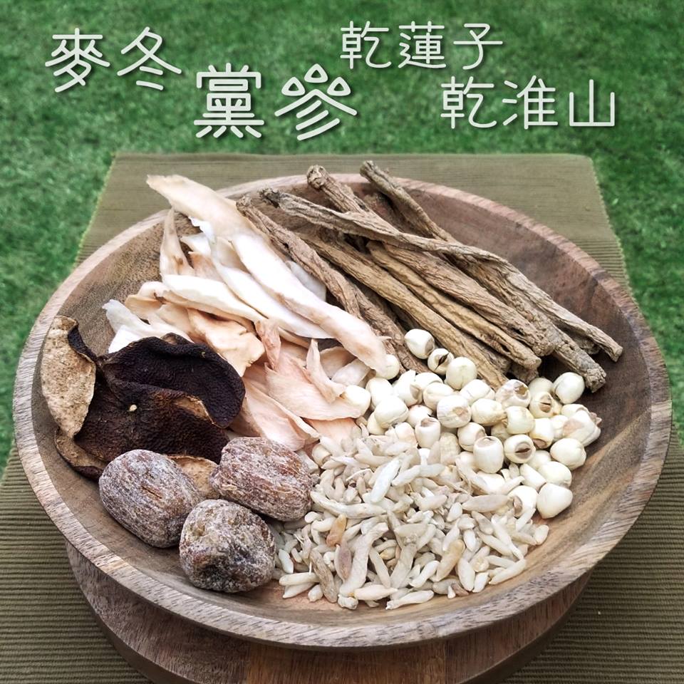 党参、麦冬、乾莲子、乾淮山配蜜枣、果皮