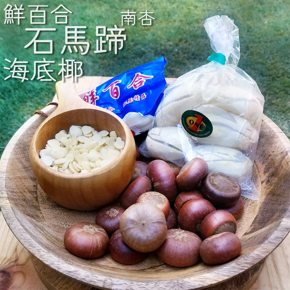 石马蹄、泰国海底椰、鲜百合、南北杏配蜜枣、果皮