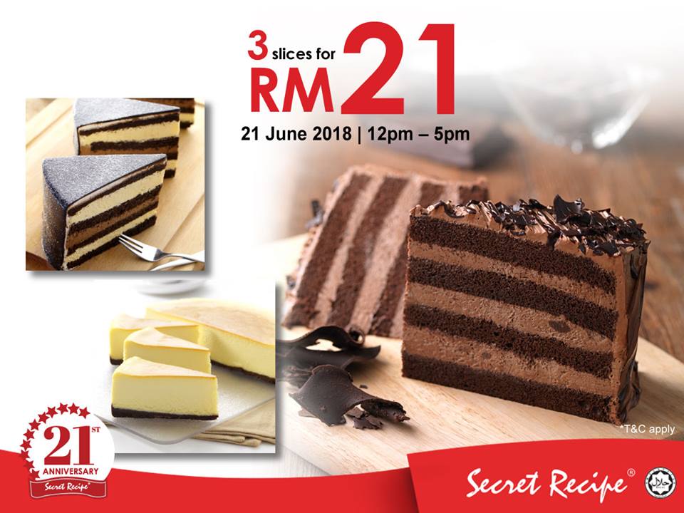 促销活动:Secret Recipe 21周年纪念! 买3片蛋糕RM21而已!