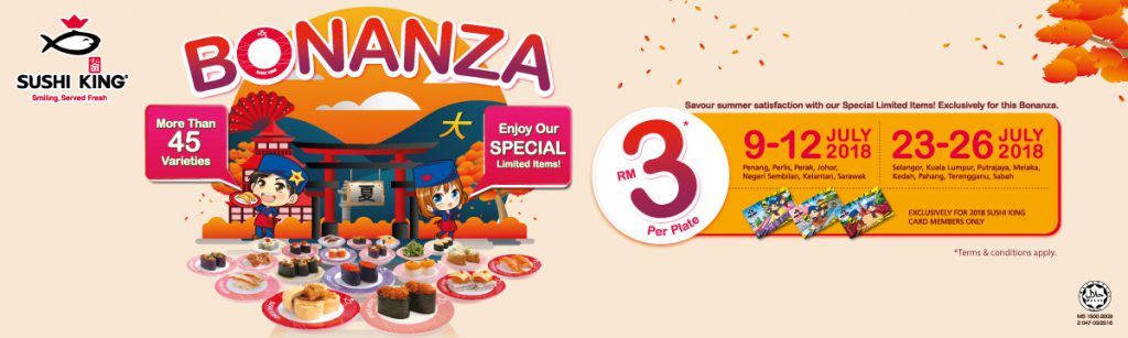 - All vouchers will not be accepted during the Bonanza Promotion, except Sushi King RM10 cash voucher.