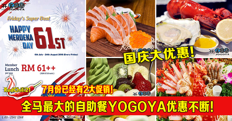 吃货们的大好消息来了!全马最大的自助餐Jogoya上閤屋7月份又推出两大优惠!周一到周五都有不同的优惠,太好了!来看看是什么优惠吧!好想好想去!
