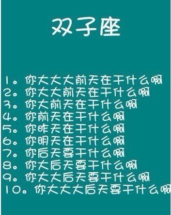 如果你听到双子座在耐心的和自己的另一半讲电话,别认为他就是一个耐心的人,其实双子座由于致命的好奇心,一刻也不愿意去做一个倾听者。然而当碰到自己的所爱时,双子会变得十分善解人意,替他排忧解难,听他的悲苦惆怅,乐此不疲。所以,双子座爱的人,必定就是可以拿出十二分耐心去对待的那个人。