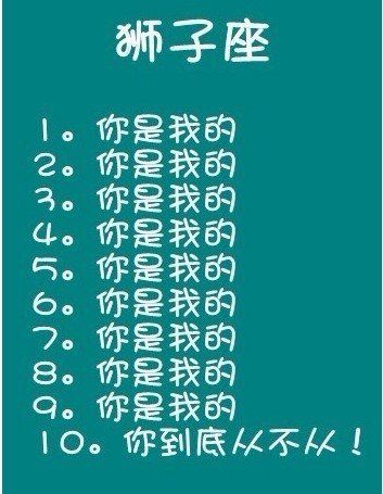狮子是一个很自我的,即使在恋爱的时候,狮子也是什么事情以自己为中心,占有欲也是特别的强。很多时候,这种强烈的管制往往使得爱人无法呼吸而想要逃离。