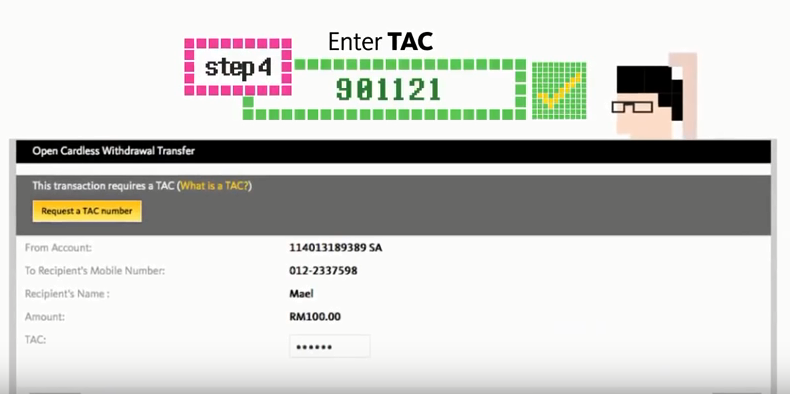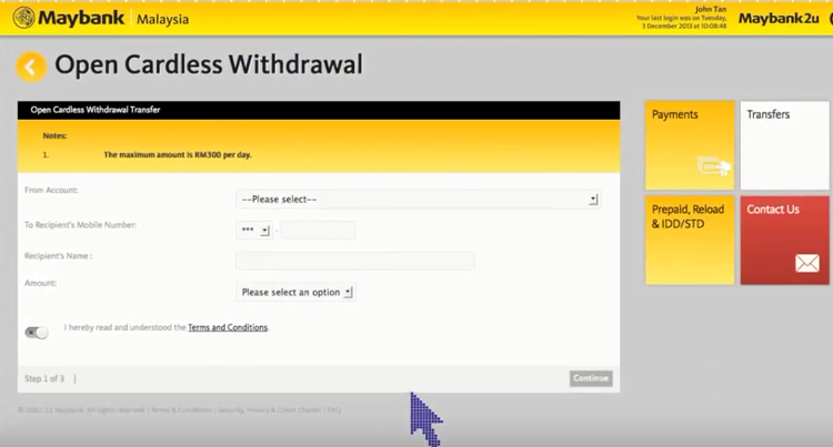 8.最后前往附近的Maybank ATM提款机,输入收到的Transaction ID和Withdrawal Code (SMS) 就能提取现金。